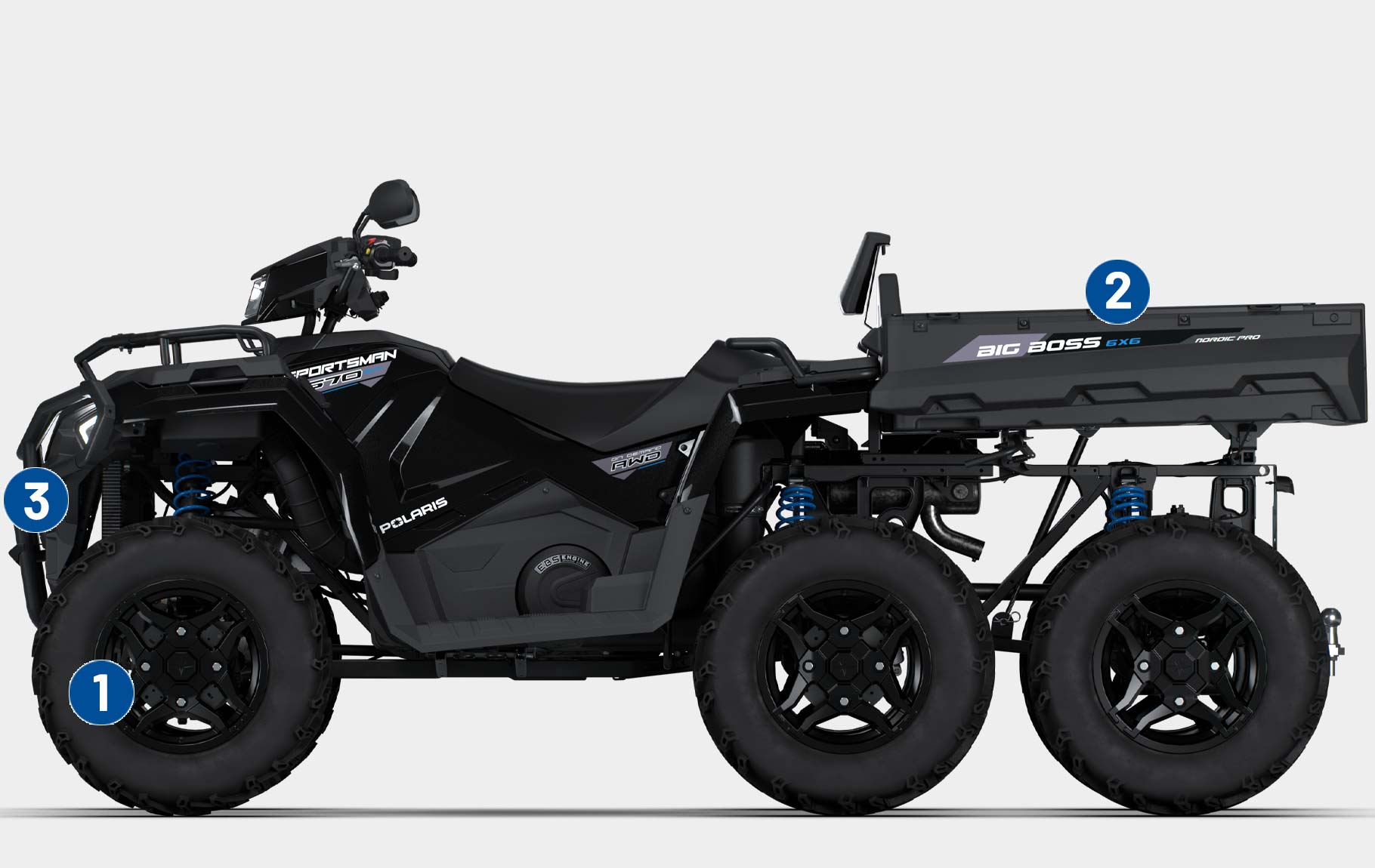 Nästa generation Sportsman 6X6 570 i modern design, förstärkt chassi och förbättrade 6x6-funktioner för en mjukare körning och överlägsen bekvämlighet.